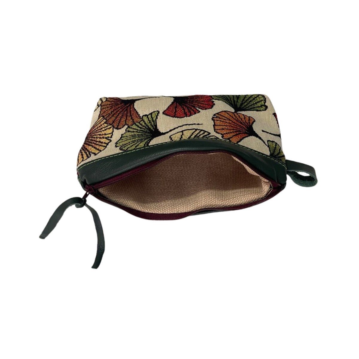 Diese wunderschöne Multifunktionstasche wurde aus hochwertigem Teilleder und Gobelin in Handarbeit gefertigt. Die Tasche hat eine Breite von 20,5 cm und eine Länge von 13 cm und bietet viel Platz für deine wichtigsten Dinge. Das Design entspricht einem Blumenmuster.